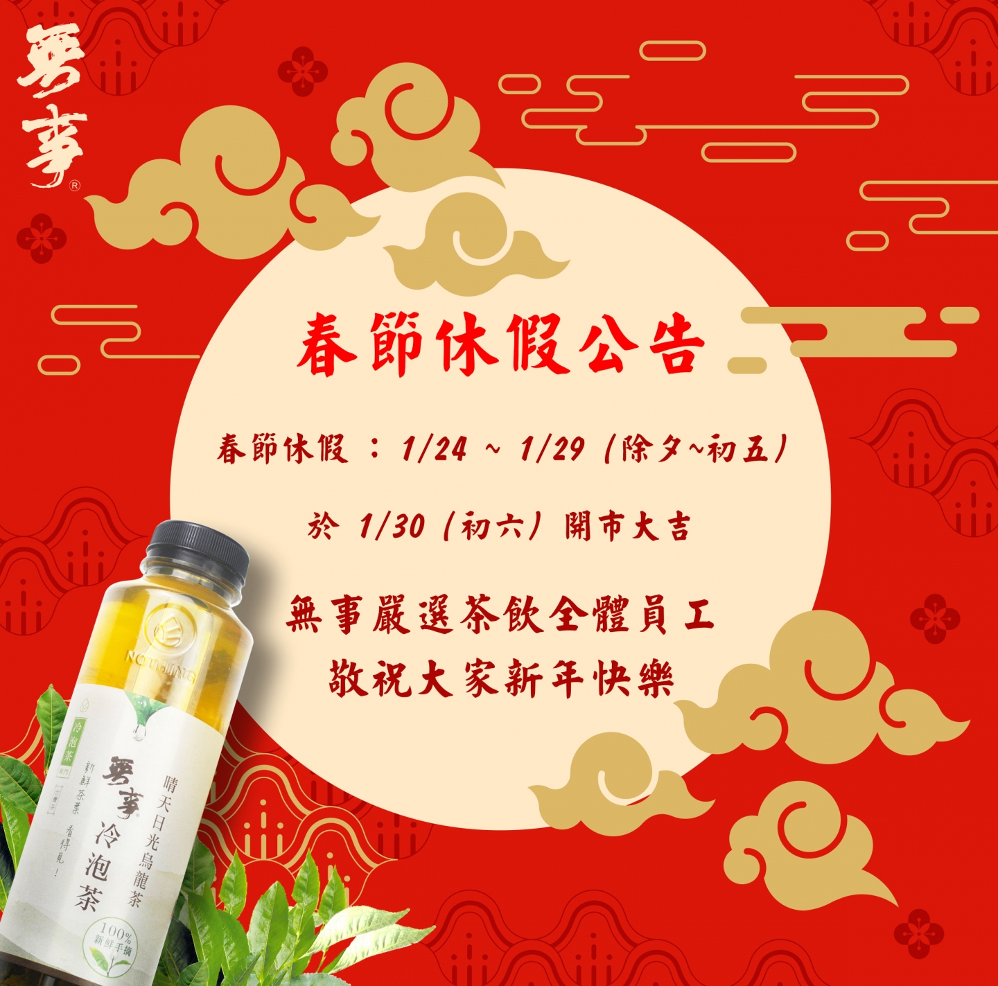 1/24(五) 除夕 至 1/29 初五(三) 春節公休